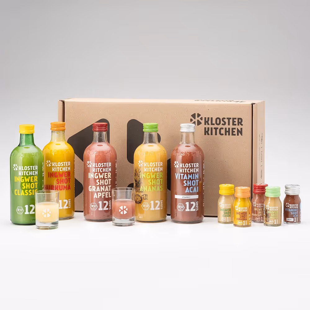 Kloster Kitchen ist bekannt für seine innovativen Produktlösungen für den bewussten Lebensstil, wie Bio-Ingwer Shots mit echten Ingwerstückchen, oder Smoothies und Saftkuren. Die Brand steht für Natürlichkeit, Wirkung und Geschmack – und vertreibt ihre Produkte sowohl im E-Commerce als auch im stationären Handel.