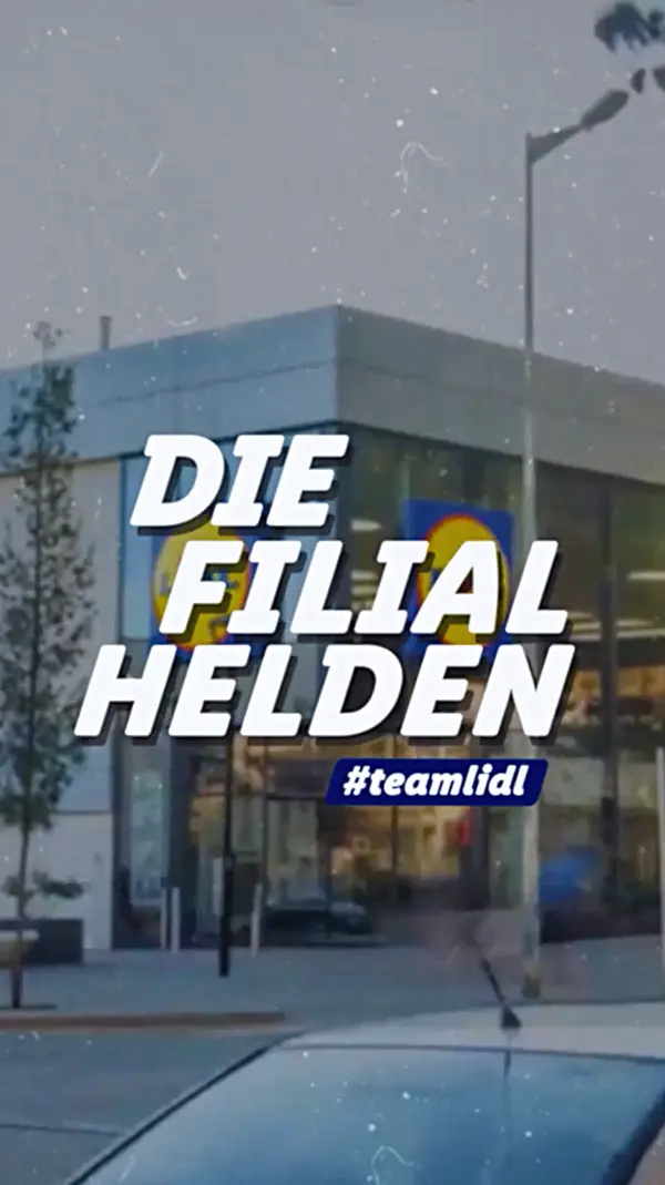 Mit der Mockumentary „Die Filialhelden“ entstand eine achtteilige Serie, die den Arbeitsalltag bei Lidl humorvoll in die Feeds bringt. Im Mittelpunkt der Story steht Mark, ein Marketing-Kollege aus der Zentrale, der gemeinsam mit Filialmitarbeiter*innen versucht, die Klickzahlen des Unternehmens auf Social Media zu steigern.